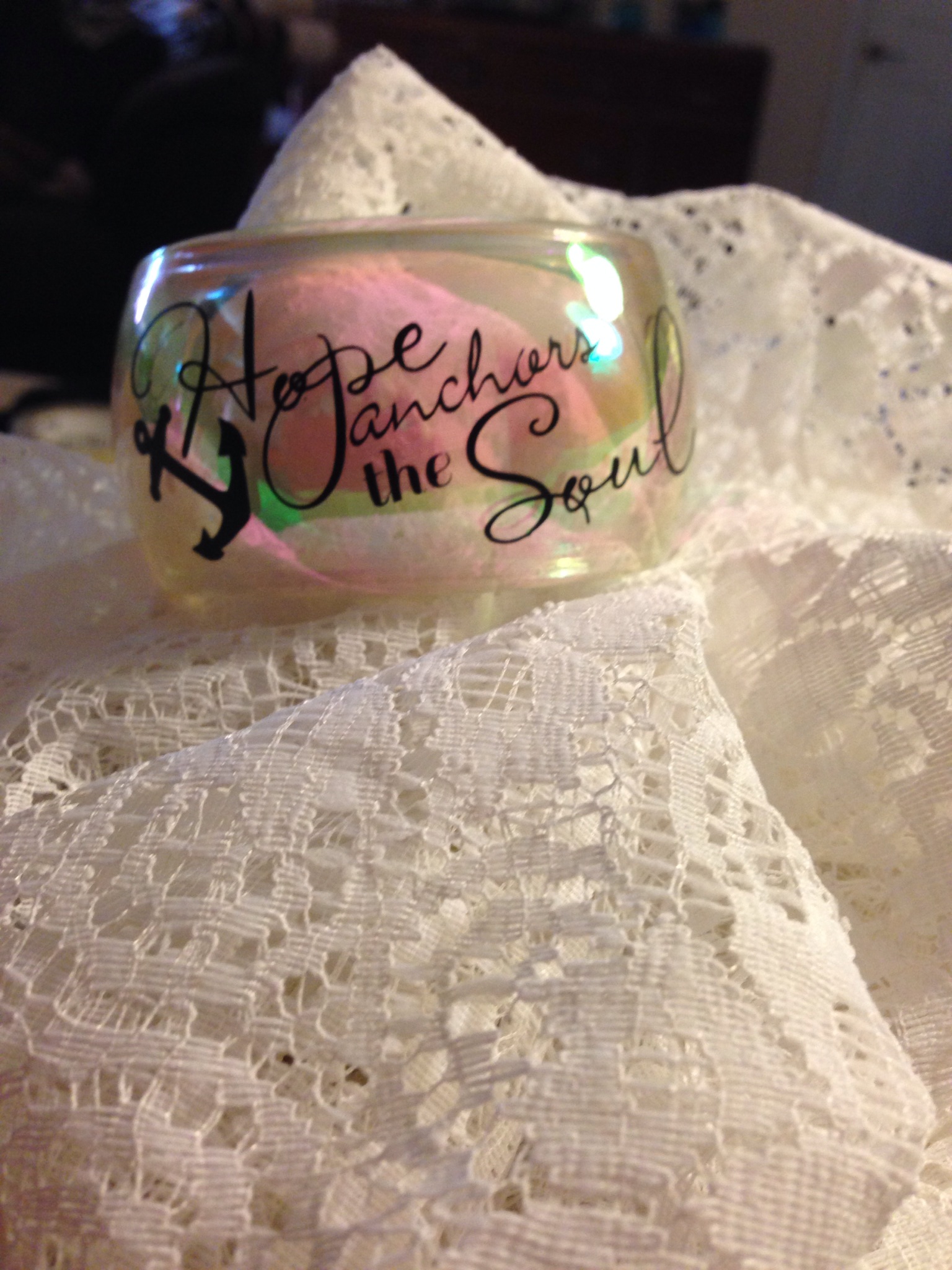 It seems that for us, we always have to “expect the unexpected”. My daughter was hospitalized on an emergency basis a couple weekends ago. It was very “unexpected” and we are very glad that she is feeling better now. While last week was a bit slow as far as bangle designs, I did decide to make several variations of “Hope Anchors the Soul”. Here is a peek!